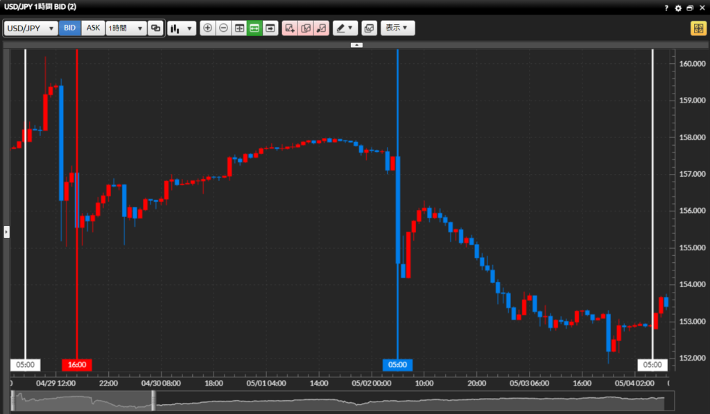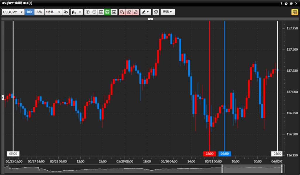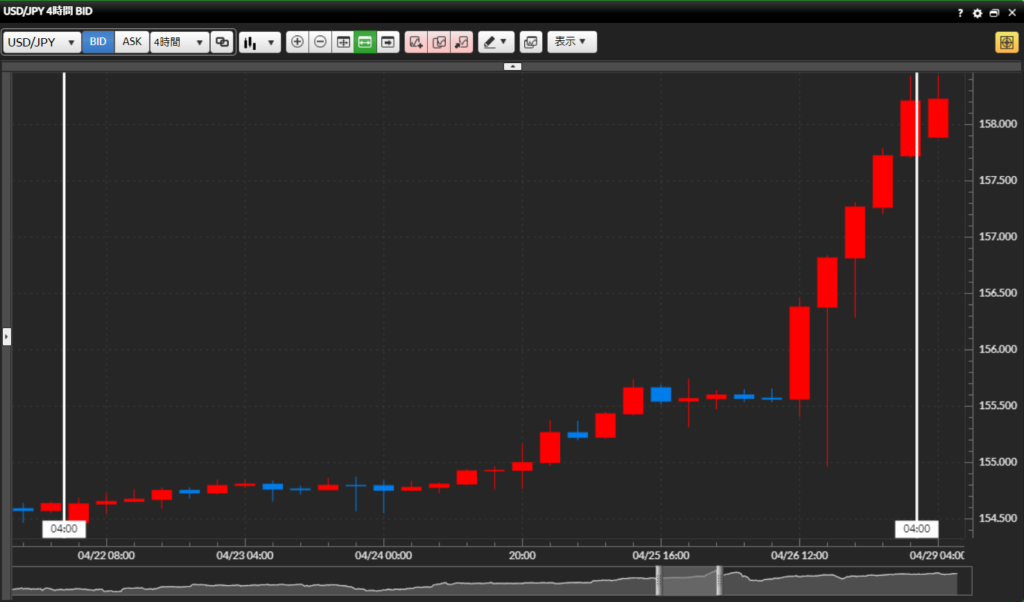 トレード分析:月末となる今週、週の前半は160円手前でレンジ。前回の為替介入が160円で入ったことで、警戒感が漂いました。160円を抜けてきたのは26日。16時からのロンドン時間からの上昇トレンドでそのまま突破。突破するとIFOで一気に上昇NYタイムでは160円後半まで伸びました。次のレジスタンスは161円。介入への警戒感から161円を超すのは7月に入ってからかと思っていましたが、28日の仲値で突破しました。やはり月末要因で実需勢が後押ししたのかもしれません。でも161円を突破したのもその時だけで、それからは160円後半でのレンジとなりました。為替介入の条件①過度な値動きは満たしたように見えます。あとは②口先介入の度合いに注目。「過度な値動きには適切な対応を」、「値動きを注視している」等は出ている。次は「ファンダメンタルを伴っていない」や「断固たる措置」等が出てくれば介入へのレベルが上がってくる。私の感覚的には163円台位で介入に動いてくるのではと思っている。それまではロング狙い。ただし、ポジション保有はあまり長くせず、スキャルやデイトレで値動きに気を付けながら利確損切のシナリオを描いてからエントリーというトレードをしていこう。